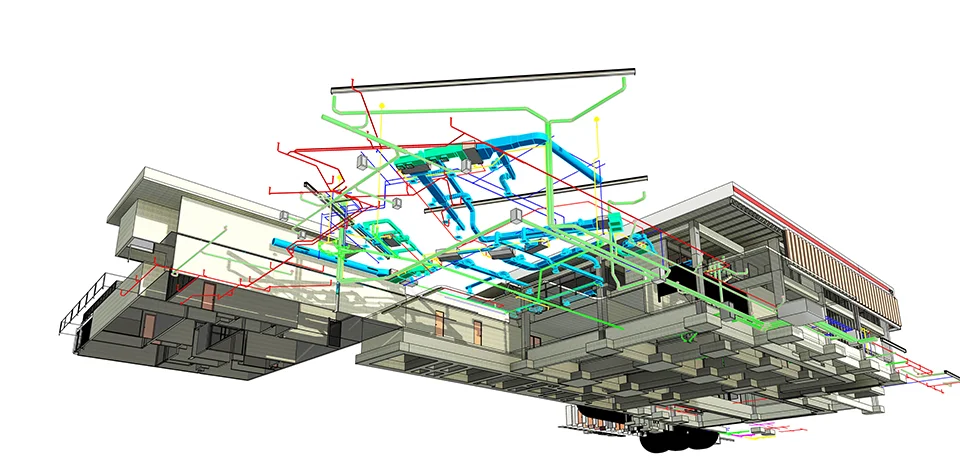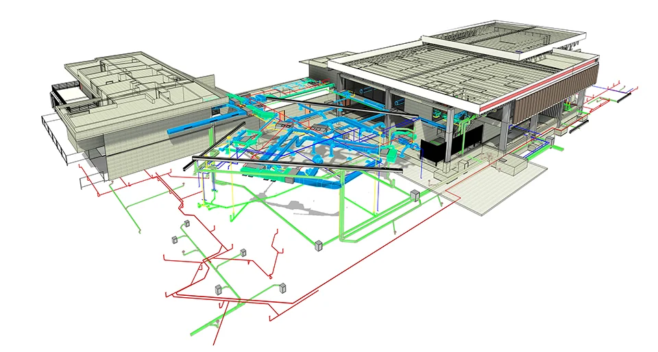 Each building had new construction and existing construction phases. The existing buildings had to be demolished and the client provided us with the CAD files as well as photographs of these existing buildings. We had to develop an Architectural, Structural and MEP 3D Revit model of the existing and new buildings.
